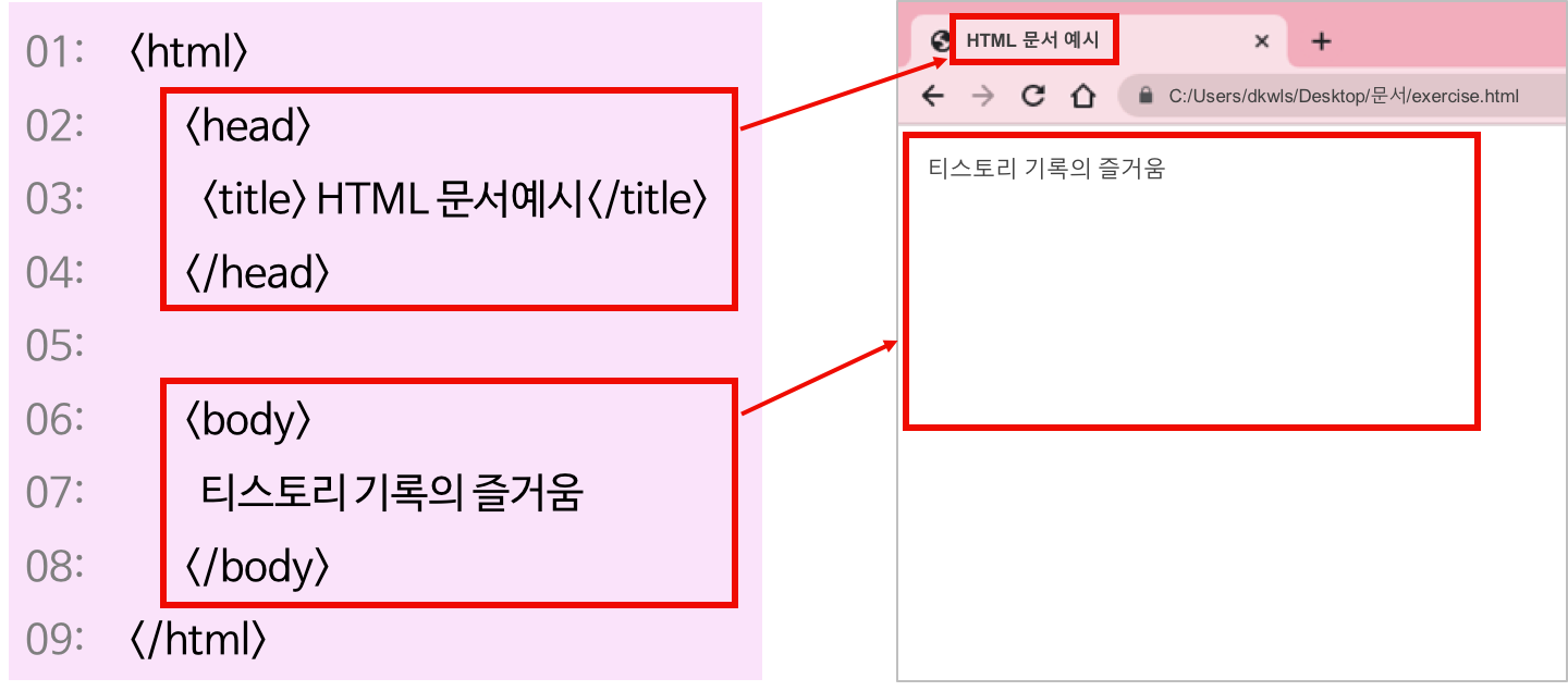 <title>은 웹 브라우저 상단의 타이틀이 되고,